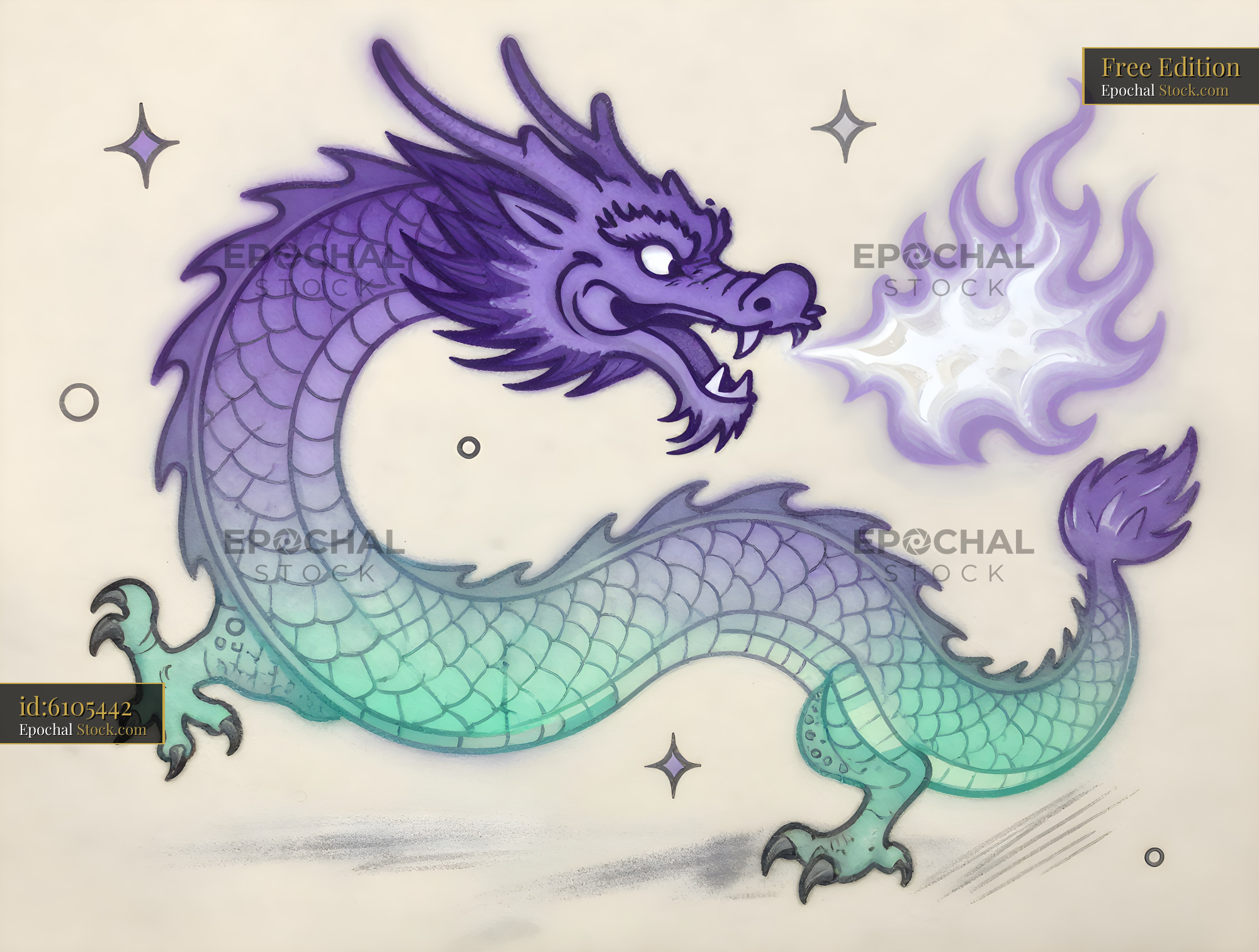 Purple dragon breathes fire in a colorful design Free Premium Stock Image