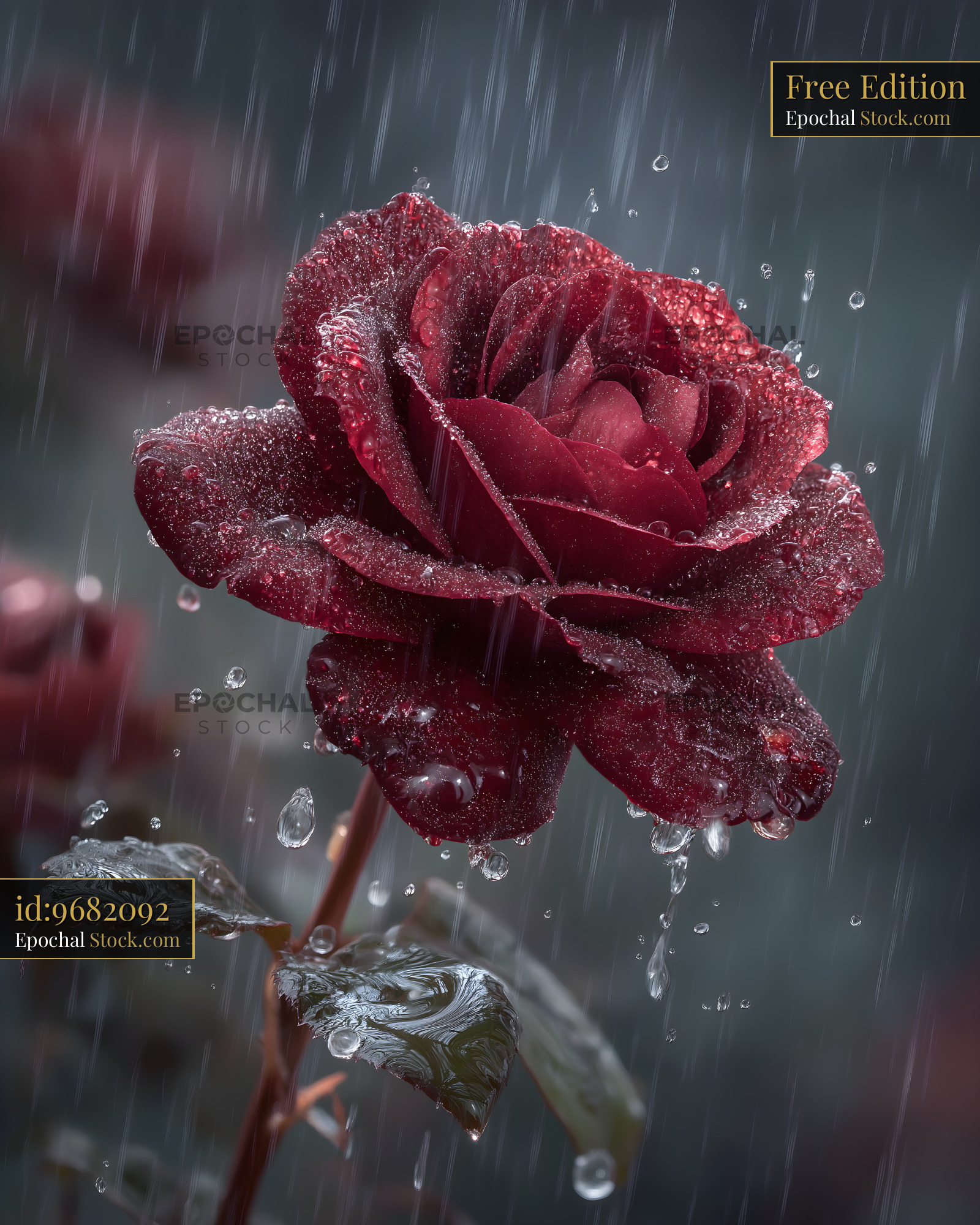 Red rose under rain with water droplets on petals Free Premium Stock Photo