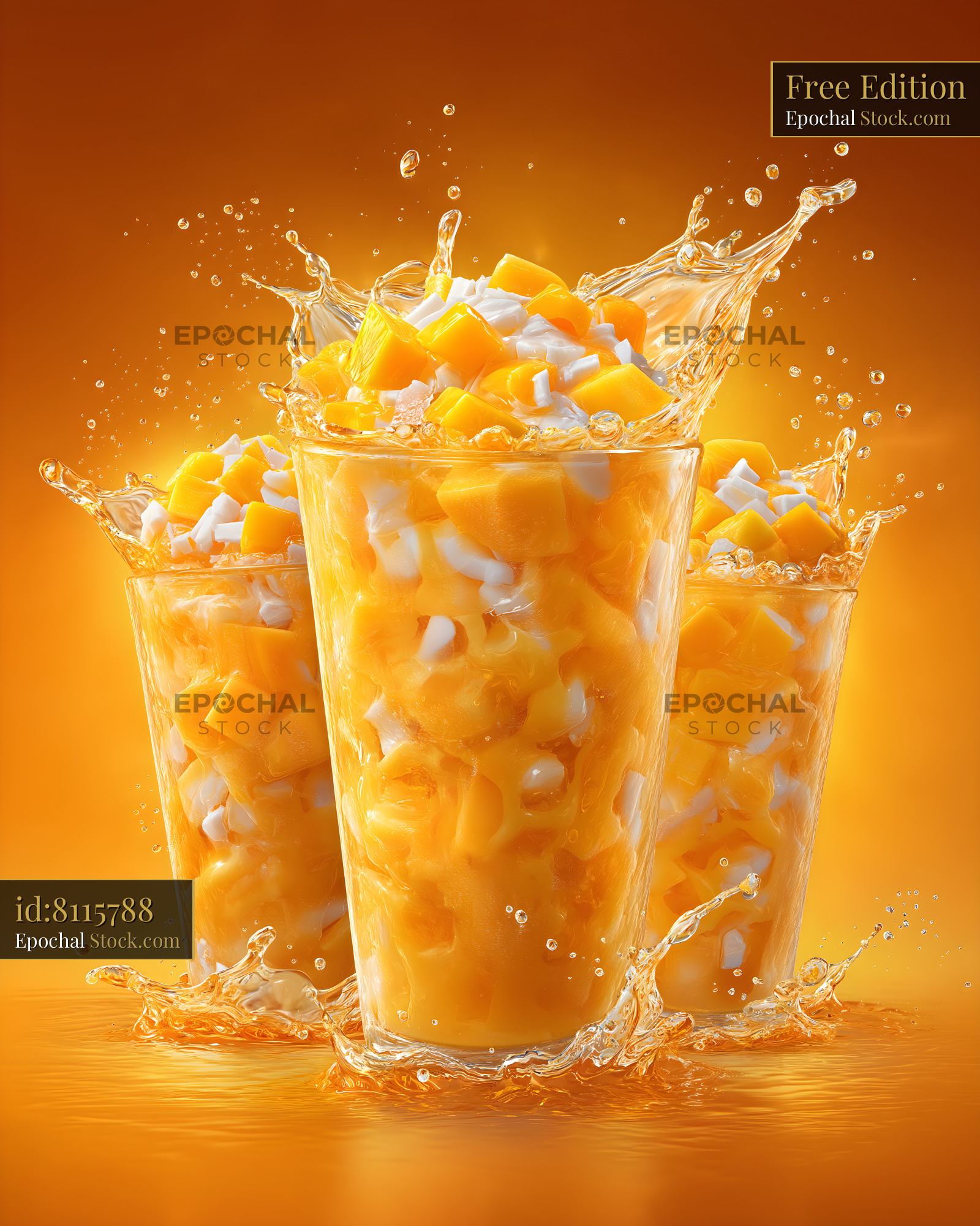 Refreshing mango drinks splash with flavor and fun Free Premium Stock Image