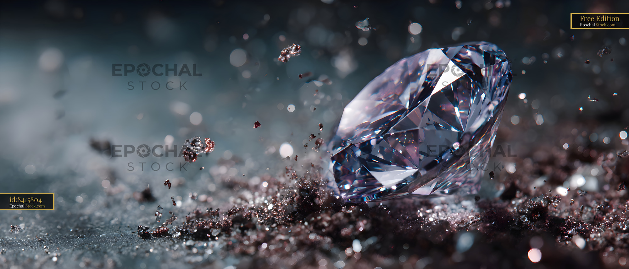 Shiny diamond sits on dark surface with dust around it Free Premium Stock Photo