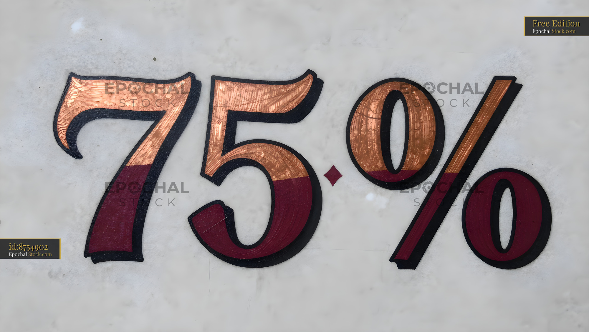 Sign shows 75 percent in bold colors on a wall surface Free Premium Stock Photo