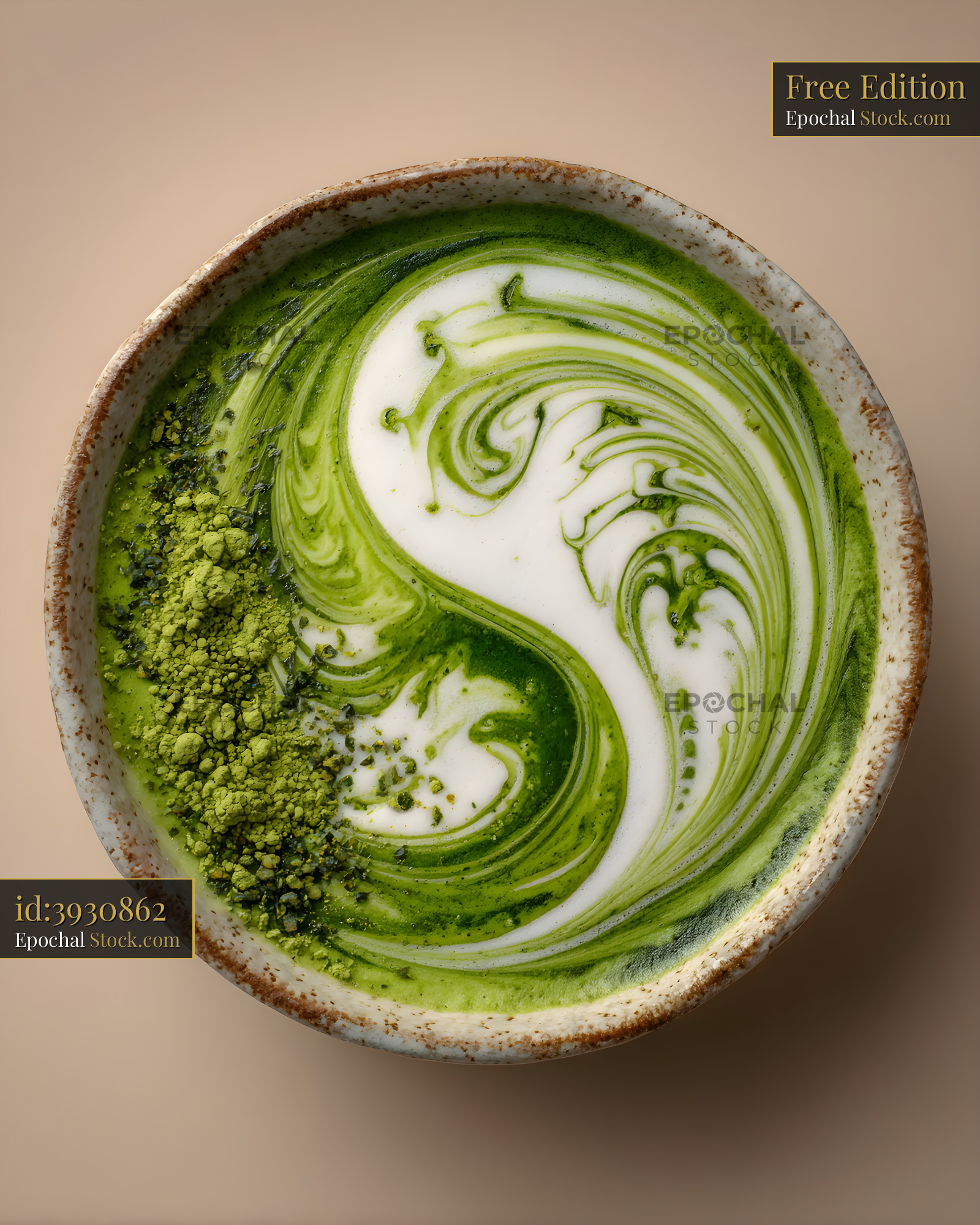 Sipping on matcha with swirls of milk in a bowl Free Premium Stock Photo