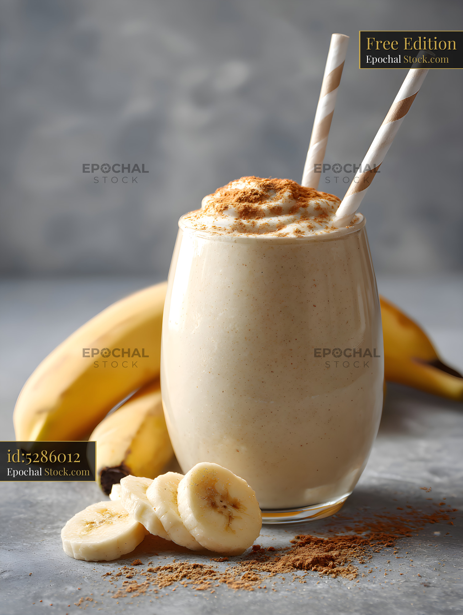 Smoothie made with banana and topped with whipped cream Free Premium Stock Image