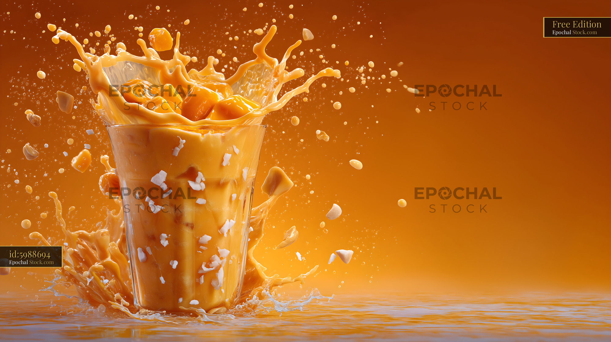 Splash of milk tea with mango in bright orange backdrop Free Premium Stock Photo