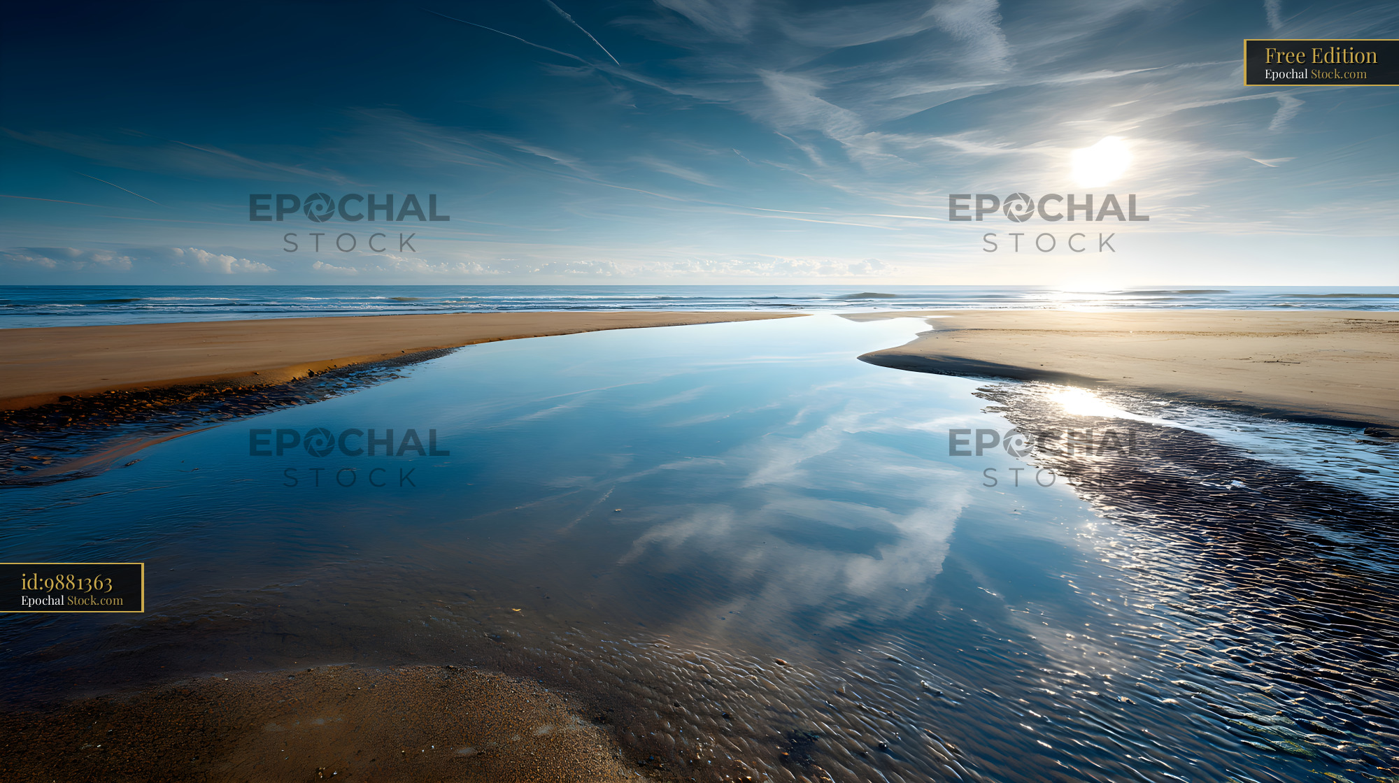 Sunrise over the ocean with reflections on the wet sand Free Premium Stock Photo