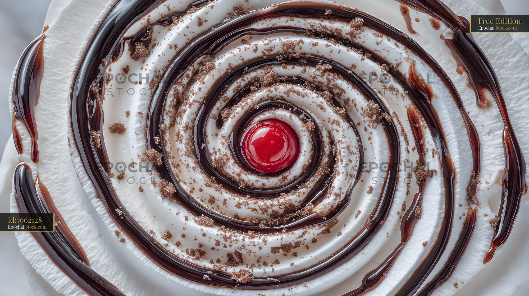 Swirl of cream and chocolate with cherry on top in dessert Free Premium Stock Image
