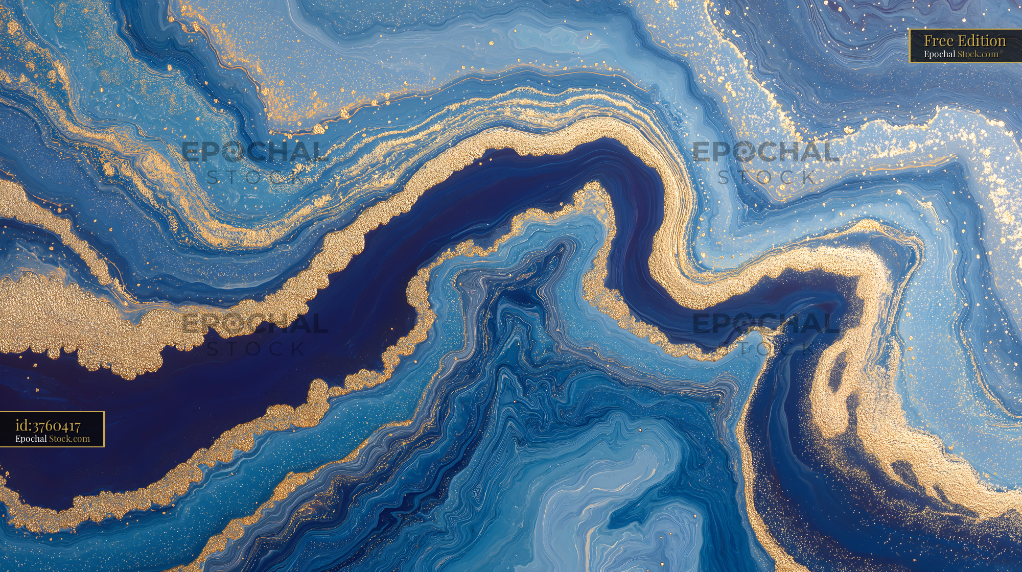 The artwork shows a mix of blue tones with gold lines flowing through the design. The colors blend together to create a unique abstract look. The scene draws attention with its smooth curves.