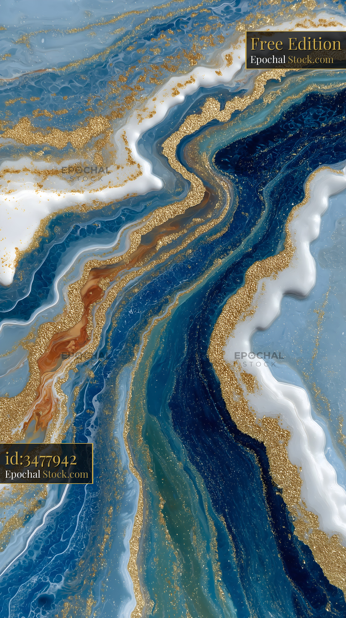 Swirling patterns of blue and gold in abstract design Free Premium Stock Image