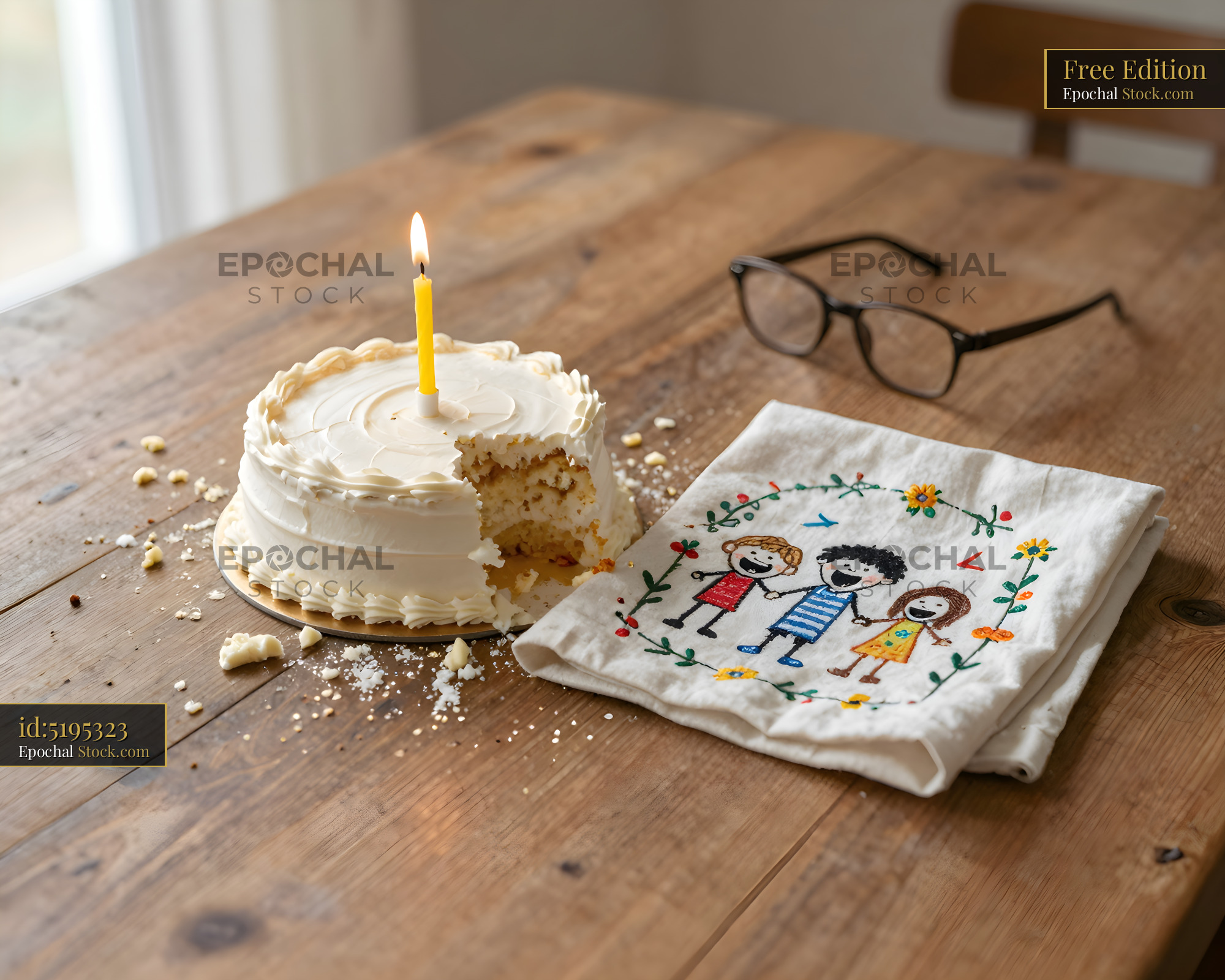 Table with cake, candle and napkin showing kids Free Premium Stock Image