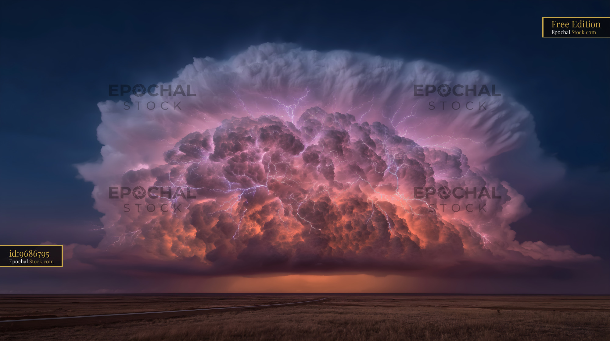 Thunderstorm cloud lights up the sky in the evening Free Premium Stock Image