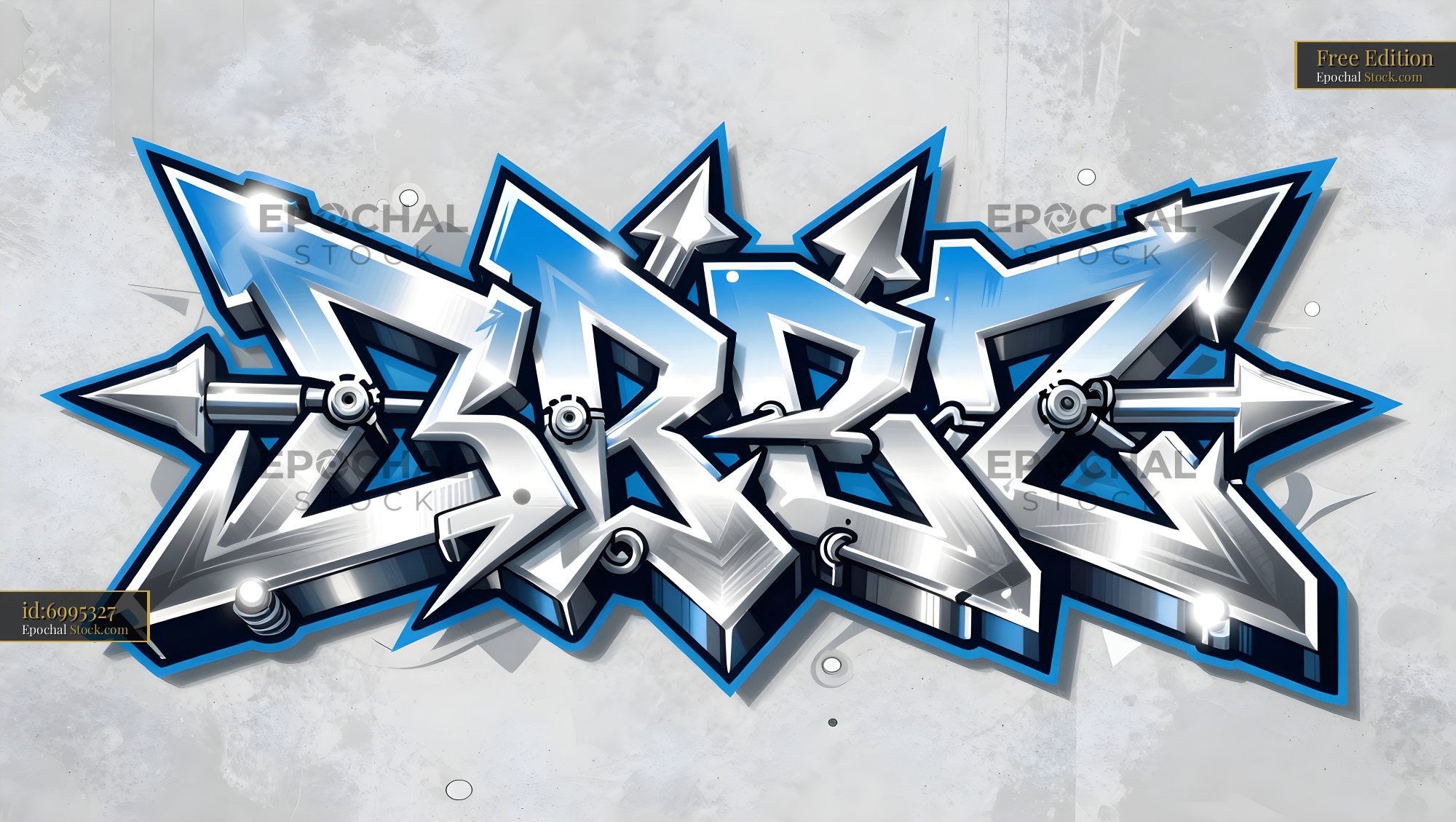 Urban graffiti design with silver and blue colors on wall Free Premium Stock Photo