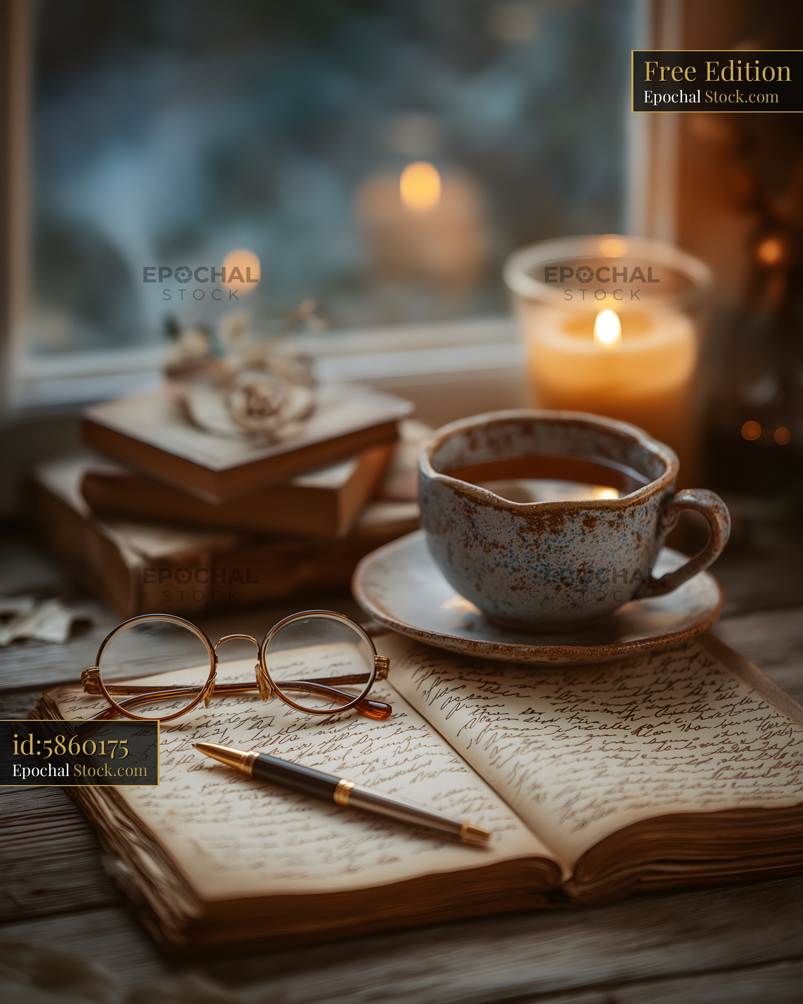 Warm drinks and writing at home in the evening light Free Premium Stock Photo