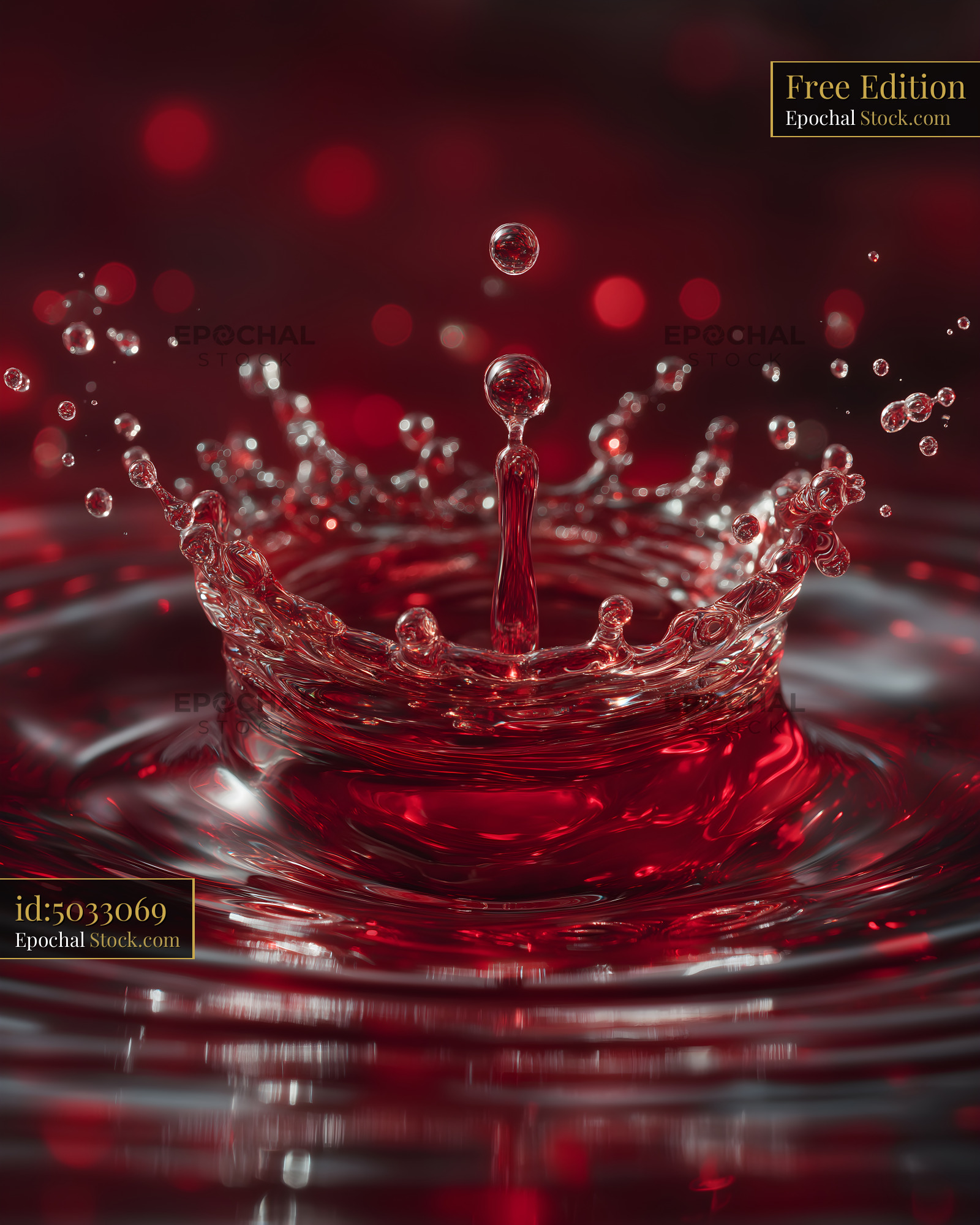 Water droplet creates splash in red liquid at close range Free Premium Stock Image