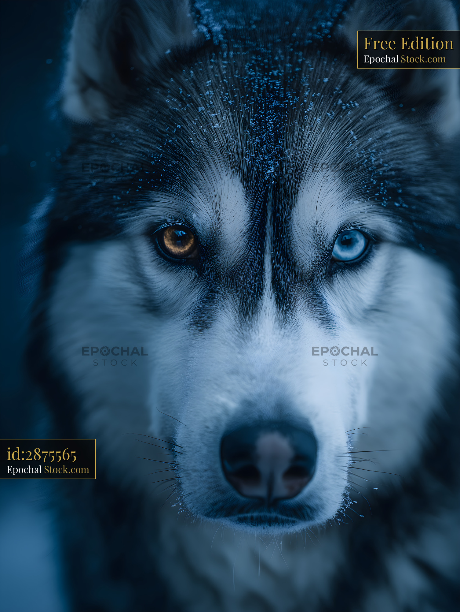 Wolf with blue and brown eyes in snowy environment Free Premium Stock Photo