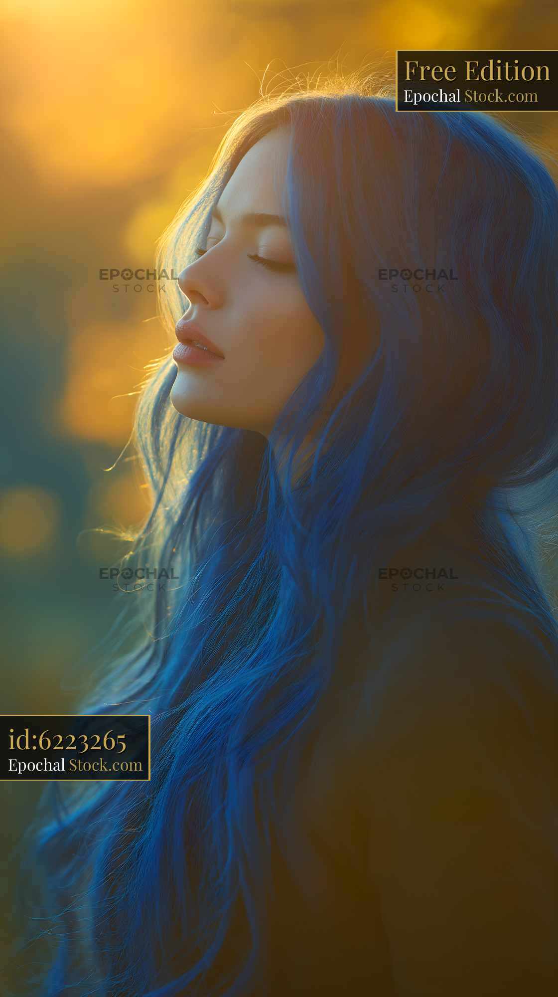 Woman with blue hair enjoying sunset in outdoor setting Free Premium Stock Image